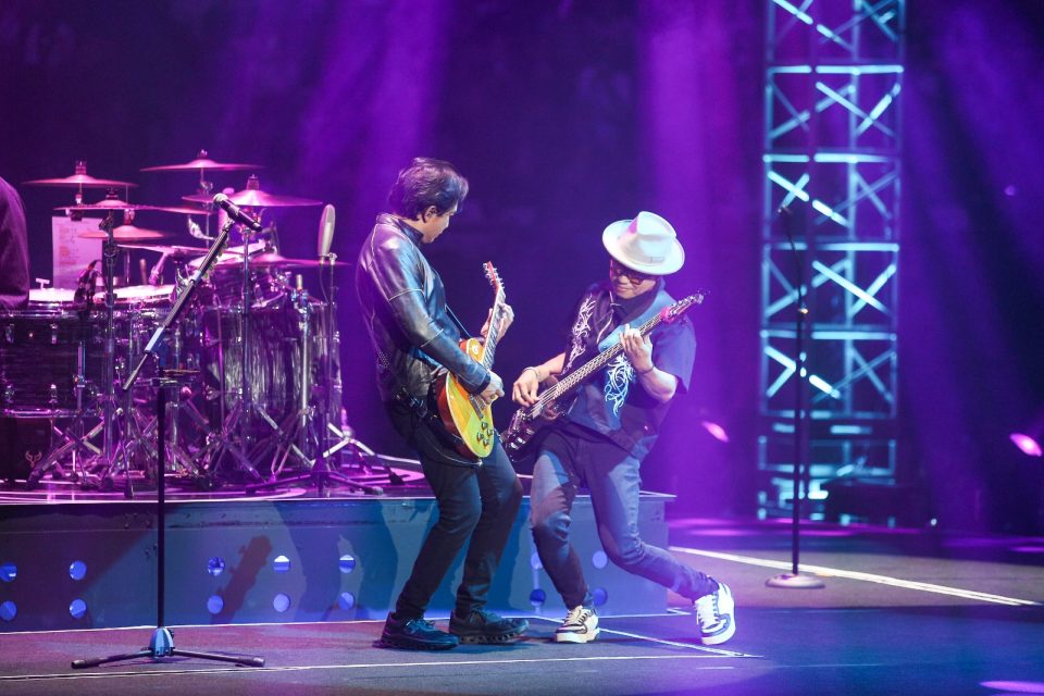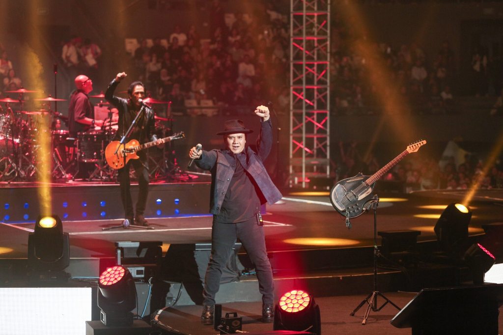 Salah satu momen paling mencuri perhatian adalah aksi solo drum Yoyo di atas panggung hidrolik. Dengan dua set drum yang diposisikan saling berhadapan, Yoyo tampil garang dan penuh energi, terlebih saat berkolaborasi dengan Rindra. Panggung bergerak yang terangkat tinggi membuat atraksi tersebut terlihat semakin megah dan dramatis.Tak hanya menghadirkan lagu-lagu hit, PADI Reborn juga memberi ruang kolaborasi lintas generasi. Penampilan Fanny Soegi membawakan “Langit Biru” serta kolaborasi Sal Priadi di lagu “Rapuh” sukses memecah suasana. Kehadiran dua musisi yang dekat dengan generasi Z ini menjadi jembatan emosional antara penggemar lama dan penonton muda yang memenuhi arena malam itu.Piyu pun tak kalah mencuri perhatian lewat solo gitar yang kuat, termasuk saat tampil sendirian di panggung hidrolik membawakan “Harmony”. Seluruh aksi panggung diperkuat dengan tata cahaya dinamis, efek asap, hingga pyrotechnic indoor yang spektakuler, menjadikan konser ini bukan sekadar pertunjukan musik, melainkan pengalaman visual yang memukau.Hampir tiga jam konser berlangsung tanpa kehilangan energi. Sebagai penutup, PADI Reborn membawakan deretan lagu wajib seperti “Mahadewi”, “Begitu Indah”, “Hitam”, dan “Sobat”—lagu-lagu yang seakan menjadi ritual sebelum penonton meninggalkan arena konser.Malam itu, PADI Reborn tampil total. “Dua Delapan” bukan hanya perayaan usia band, tetapi juga perayaan kenangan, kesetiaan penggemar, dan bukti bahwa karya-karya PADI tetap hidup, relevan, dan dicintai lintas generasi. (Egi)